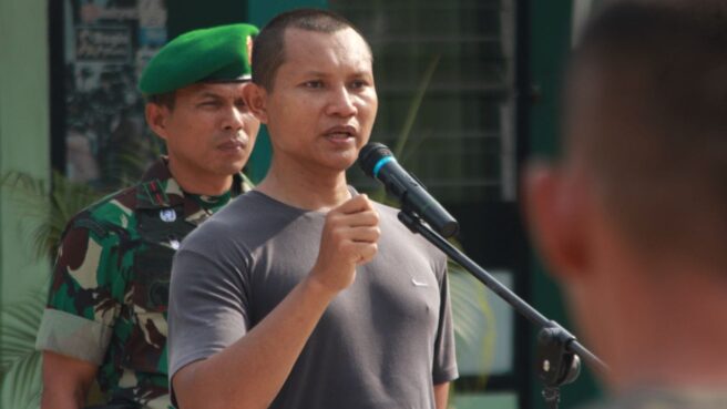 Sidrap Sulsel, satelit01.com — Dandim 1420/Sidrap, Letkol Inf Andika AP.,SE,M.I.Pol, memimpin langsung apel pagi dan olahraga senam bersama seluruh personil Kodim 1420/Sidrap pada Jumat ini, 27 Oktober 2023