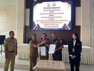 Soppeng, satelit01.com – Pemerintah Kabupaten Soppeng melalui Bupati H Suwardi Haseng SE, resmi menandatangani Nota Kesepahaman (Memorandum of Understanding/MoU) dengan Kejaksaan Negeri Soppeng yang diwakili oleh Kepala Kejaksaan Negeri (Kajari) Sulta D Sitohang S.H., M.H. Penandatanganan kerjasama dan koordinasi dalam rangka penanganan masalah hukum Bidang Perdata dan Tata Usaha Negara (PTUN) ini berlangsung di Aula Kantor Gadis pada Senin (23/2/2026) dengan suasana yang resmi dan penuh makna.