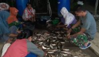Sarana Perkuat Silaturahmi, Anggota Satgas TMMD Ke 118 Bantu Bersihkan Ikan Untuk Di Masak Bersama Warga