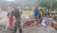Pasiter Kodim 1420/Sidrap Bersama Anak-Anak Desa Kalempang Bergotong-royong Pengerjaan RTLH